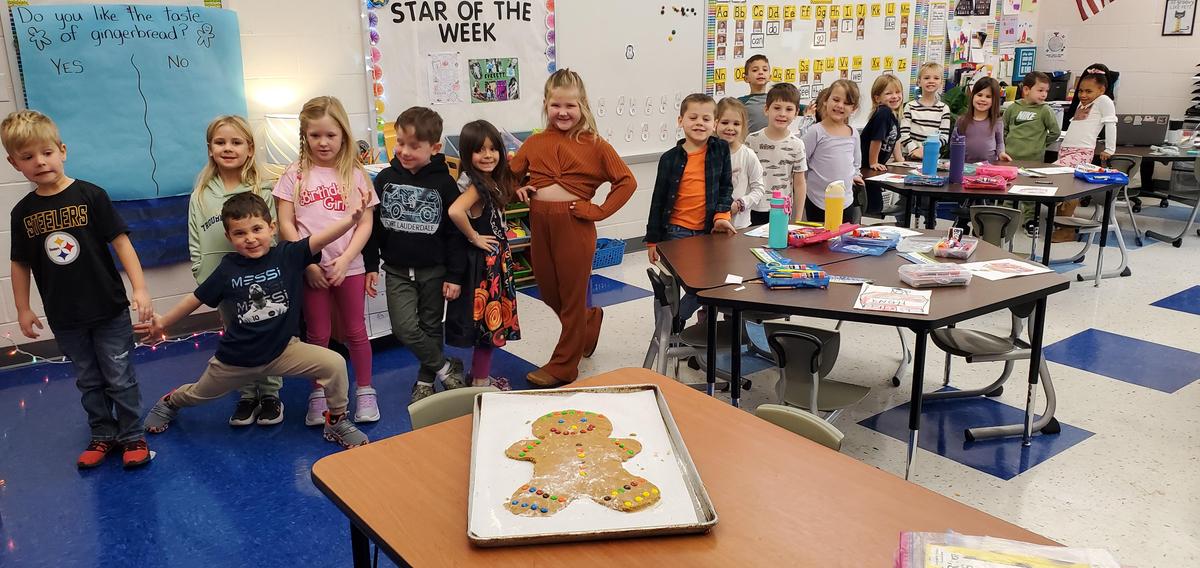 Mrs. Zhikharev's Kindergarten class made a GIANT gingerbread cookie this morning. 🍪 They headed off to the cafeteria to bake him. The problem is when they came back - he was GONE! The class hunted around the school to try to find that sneaky gingerbread man. Lo and behold, he just missed being in their room, and they found him right back in their class. Students then got to taste test their gingerbread cookie and graph the results.